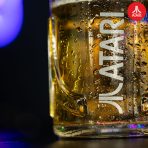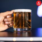 Enjoy a frosty, cold beverage with Atari style. This 1-pint beer glass features an extra-large, 3D Fuji embossed on both the front and back. Perfect for beer, fizzy drinks, and other cold beverages.