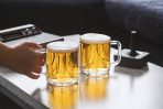 From the makers of the fan-favorite Joystick Decanter Set, this embossed beer glass measures 4.5” wide (including handle) and 5.12” tall and holds 1 pint or 600 ml of liquid. Makes a perfect gift for beer lovers and Atari fans alike.