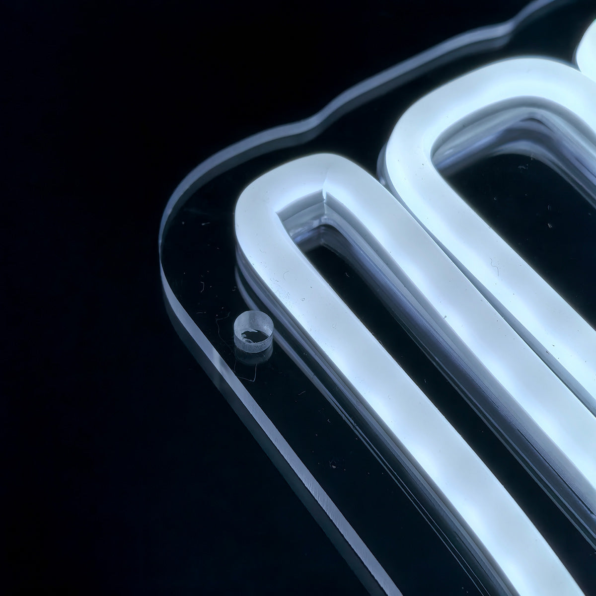 Pre-drilled holes for easy wall hanging – this neon sign is USB-powered with a built-in dimmer switch.