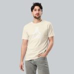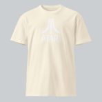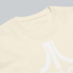 A subtle white logo on a heavyweight, 100% cotton ivory tee. Structured fit.