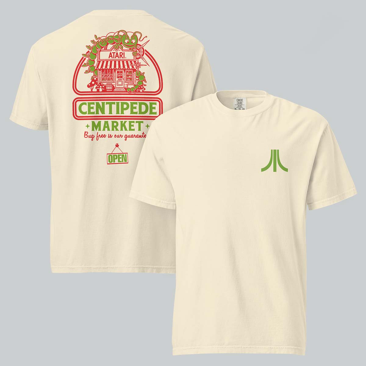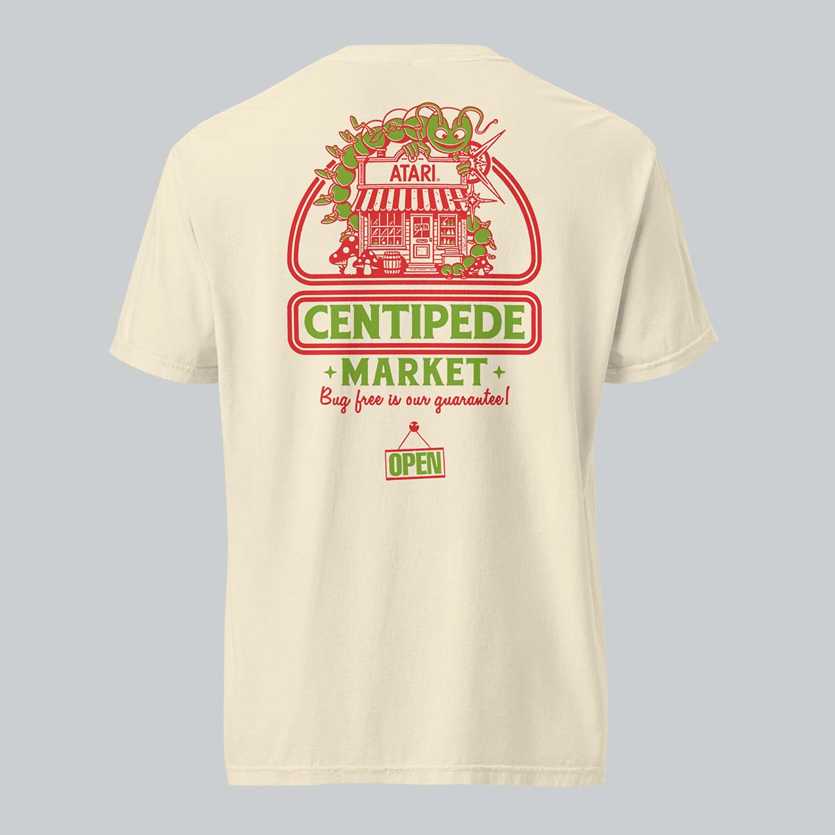 Centipede Market is always open and 100% bug-free. We promise. Get the official market shirt in comfy cotton with the Atari Fuji on the front and the market logo on the back.