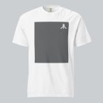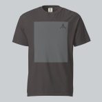 Dark gray Fuji block art is printed direct to a garment-dyed tee for a soft, natural feel. Available on a 100% cotton Graphite, Granite, Lagoon Blue or White tee.
