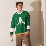 Are you team St. Patty’s Day, or what? A green hockey jersey with a large Fuji across the front. Features the Atari Ireland Ltd. logo on the bottom left hem and Celtic-inspired trim details.