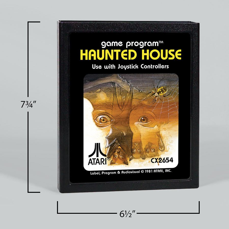 For when you need to show your fandom in a BIG way. This oversized cartridge is a replica of the original Haunted House 2600 game cartridge, perfect to display on your desk or game shelf. Replica only, not playable.