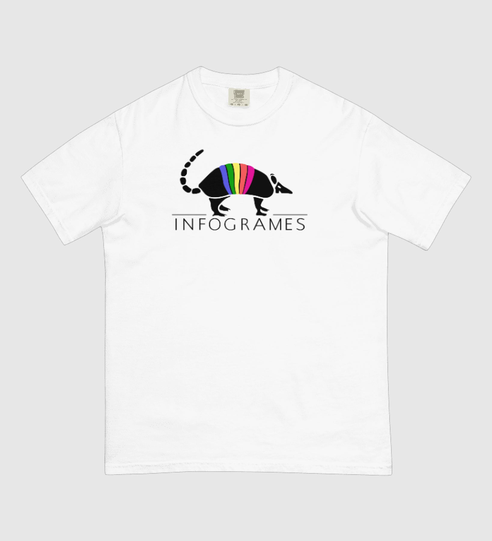 This tee sports the throwback rainbow armadillo logo used by Infogrames between 1991 and 1996. Tatu (armadillo in French) is available on white or butter premium, heavyweight cotton that offers a structured yet comfortable fit.