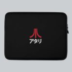 Secure your laptop in this neoprene sleeve featuring the Atari katakana logo across the front. Choose from 13 or 15″ sizes to fit most laptops.