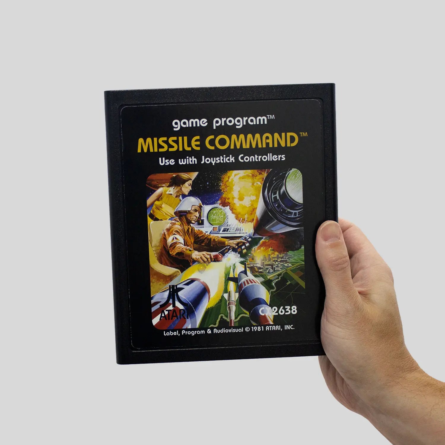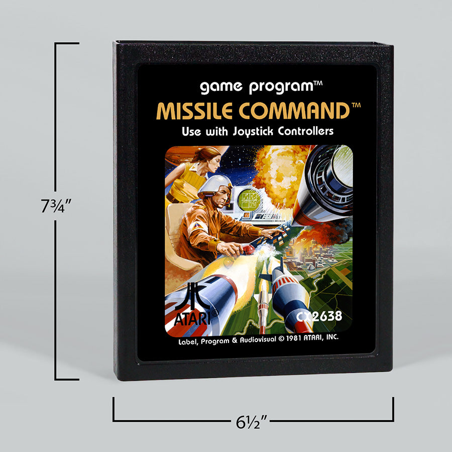Honey, we blew up the game cartridge. This oversized cartridge is a replica of the original Missile Command 2600 game cartridge, perfect to display on your desk or game shelf. Replica only, not playable.