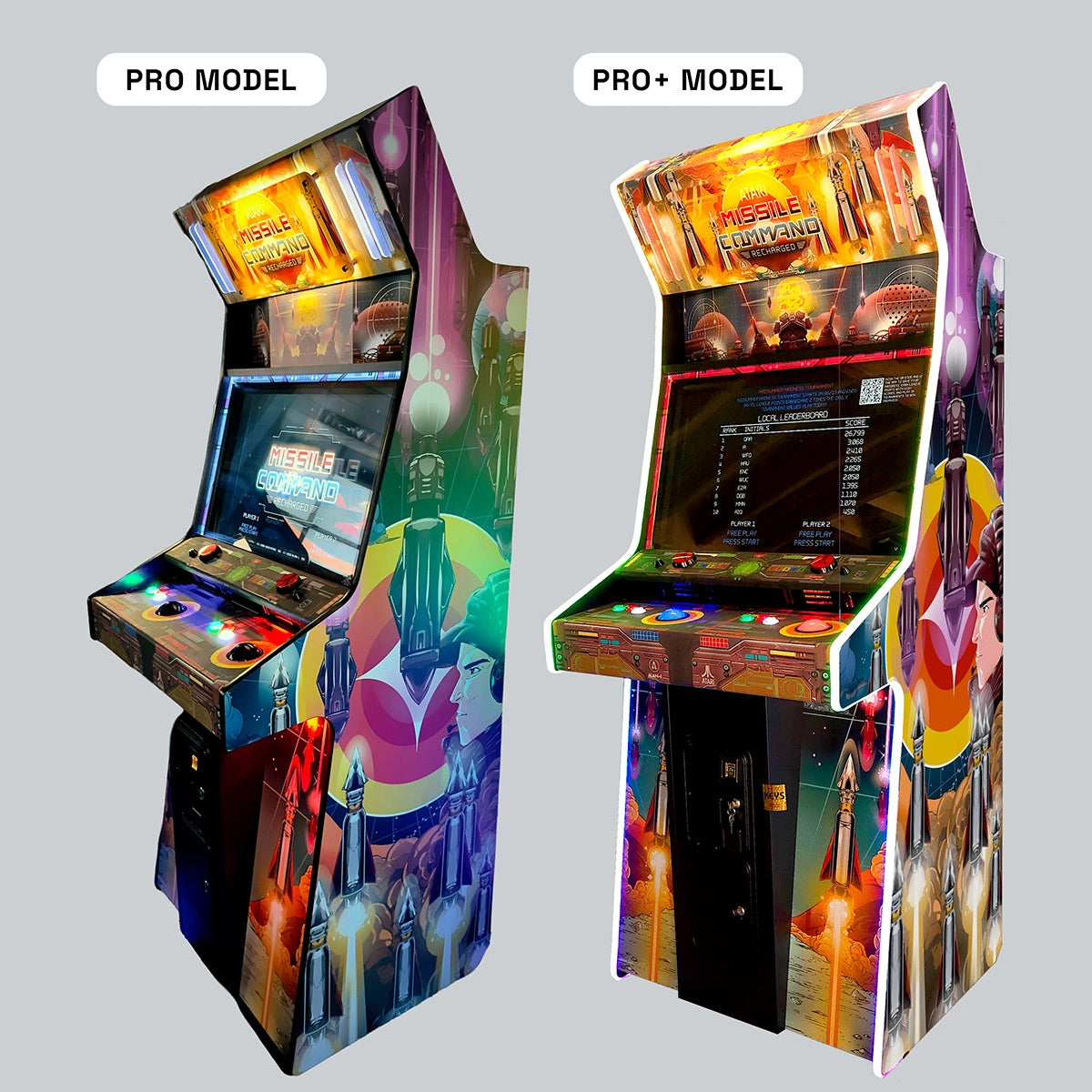 Level up your experience with the Pro+ model, which features an enhanced lighting package with RGB LED t-molding. LEDs wrapped along the edges of the cabinet to add even more drama and glow to your game.