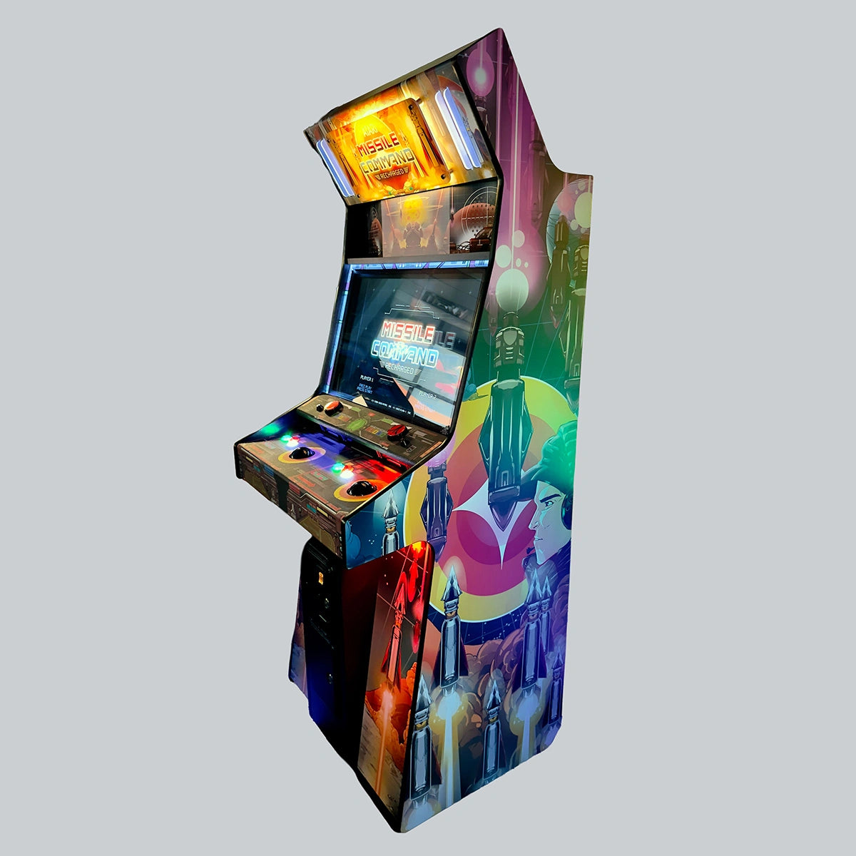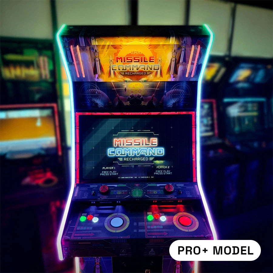 Play an arcade edition of Missile Command Recharged on this full-size, commercial-grade arcade cabinet. With a 32” monitor, 2.1ch audio system, real arcade controls, and LED light shows, this cabinet levels the arcade experience from every angle. WiFi enabled, so you can access Major League Esports tournaments, leaderboards, and more.