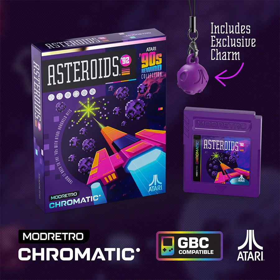 Booyah! Step into another generation of Atari games with ‘90s handheld versions of Asteroids, Centipede, and Super Breakout. Remastered by ModRetro for the Chromatic, each game features updated colors and slammin’ new music, while keeping its original ‘90s feel. Packaged together in a stylish slipcase, the ‘90s Rewind Collection includes fresh new art and an exclusive Chromatic charm for each game.