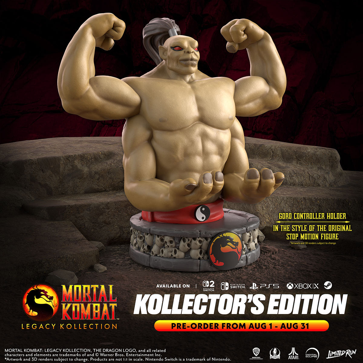 The ultimate Kollector’s Edition is available in limited quantities in partnership with Limited Run Games. Packaged in an individually numbered Kollector’s box, the set includes a Goro controller holder statue, hardcover art and lore book, and much more. Ship date to be announced.