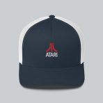 The Atari logo on a structured trucker cap in classic Navy & White.