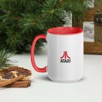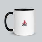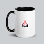 White ceramic Atari logo mug with a bright red or black handle and interior. Comes in 11 and 15 oz sizes. Coffee or tea?