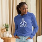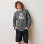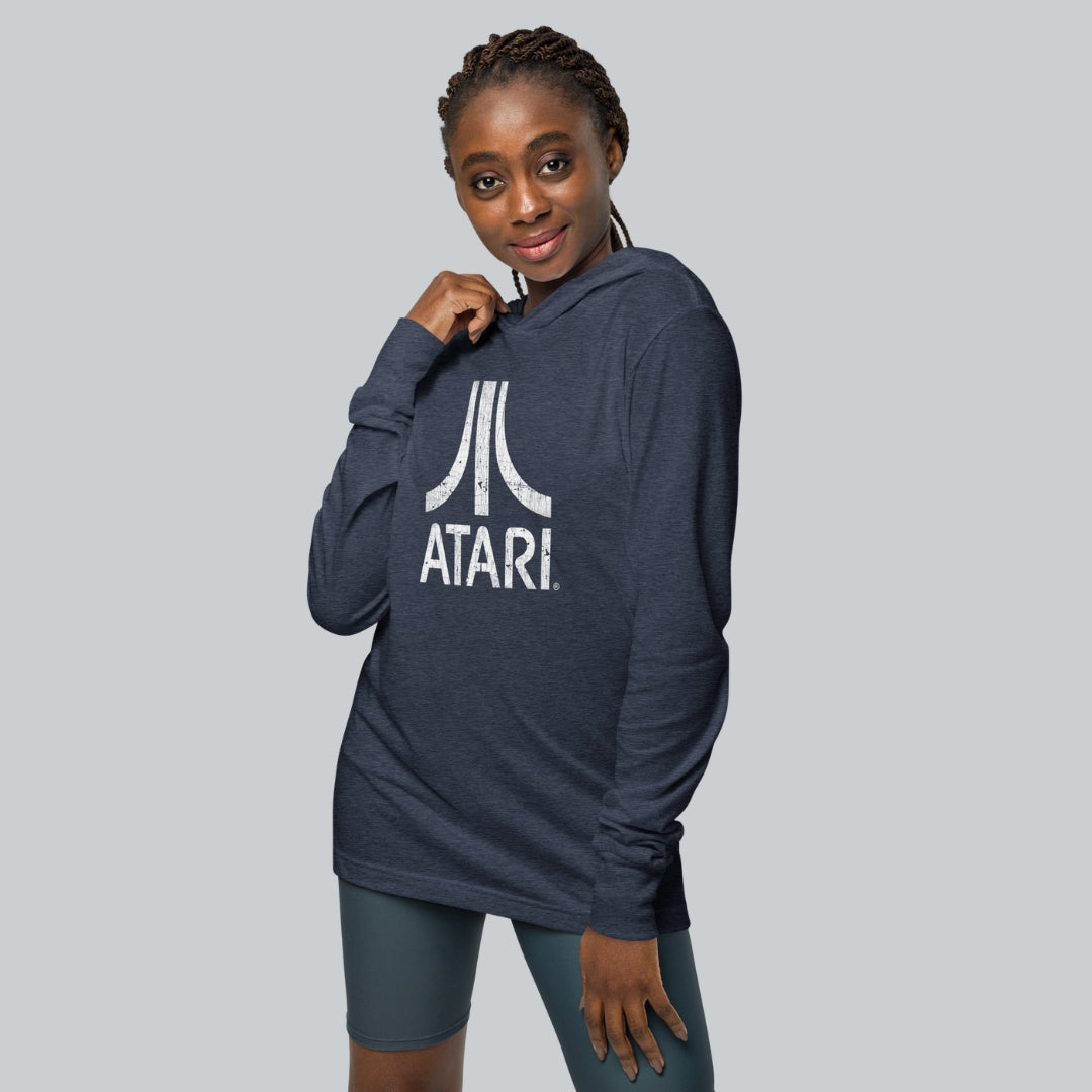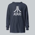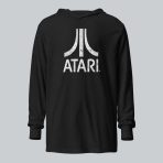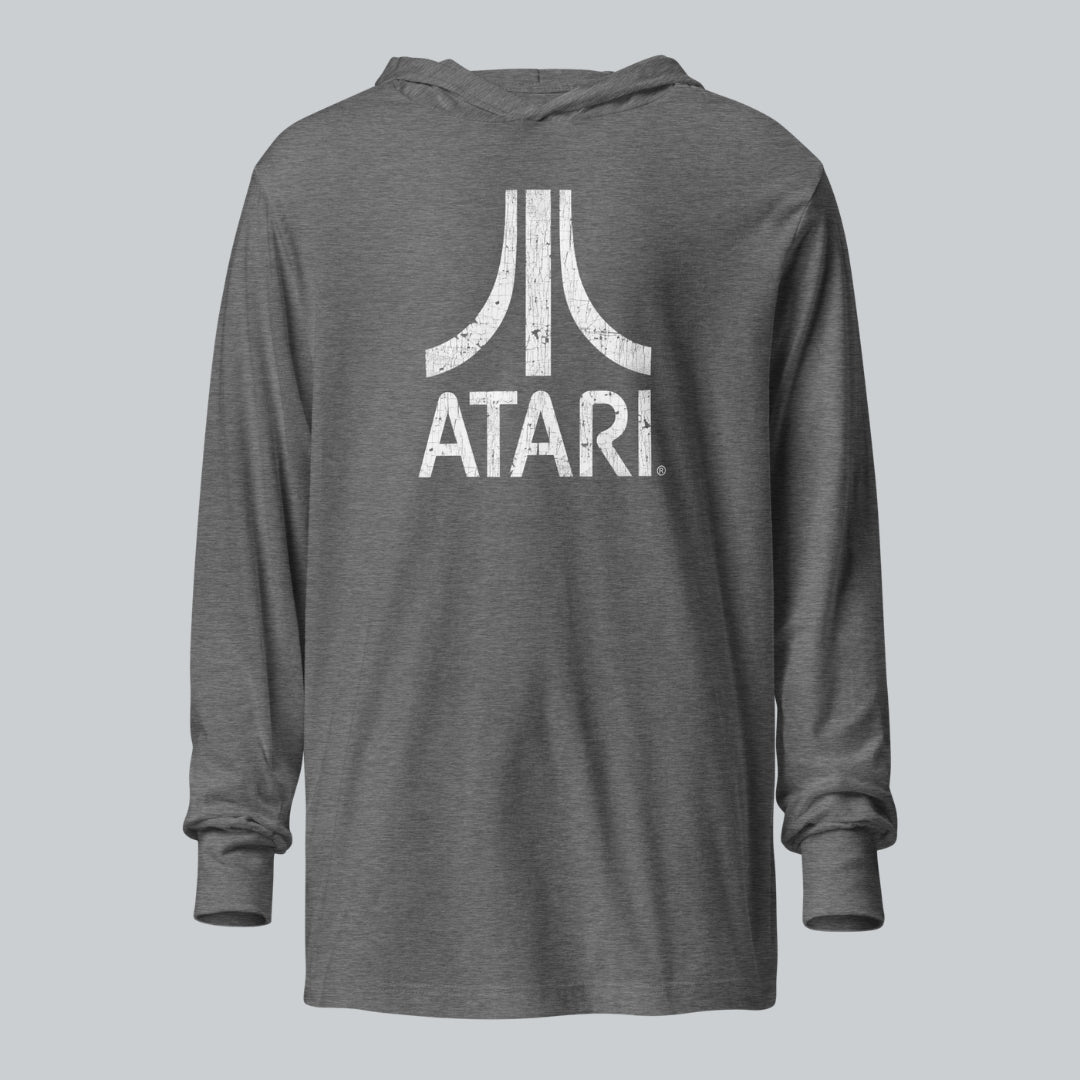 A comfy, hooded, long-sleeve tee with that vintage Atari look. White, distressed logo on a 100% cotton, long-sleeve tee.