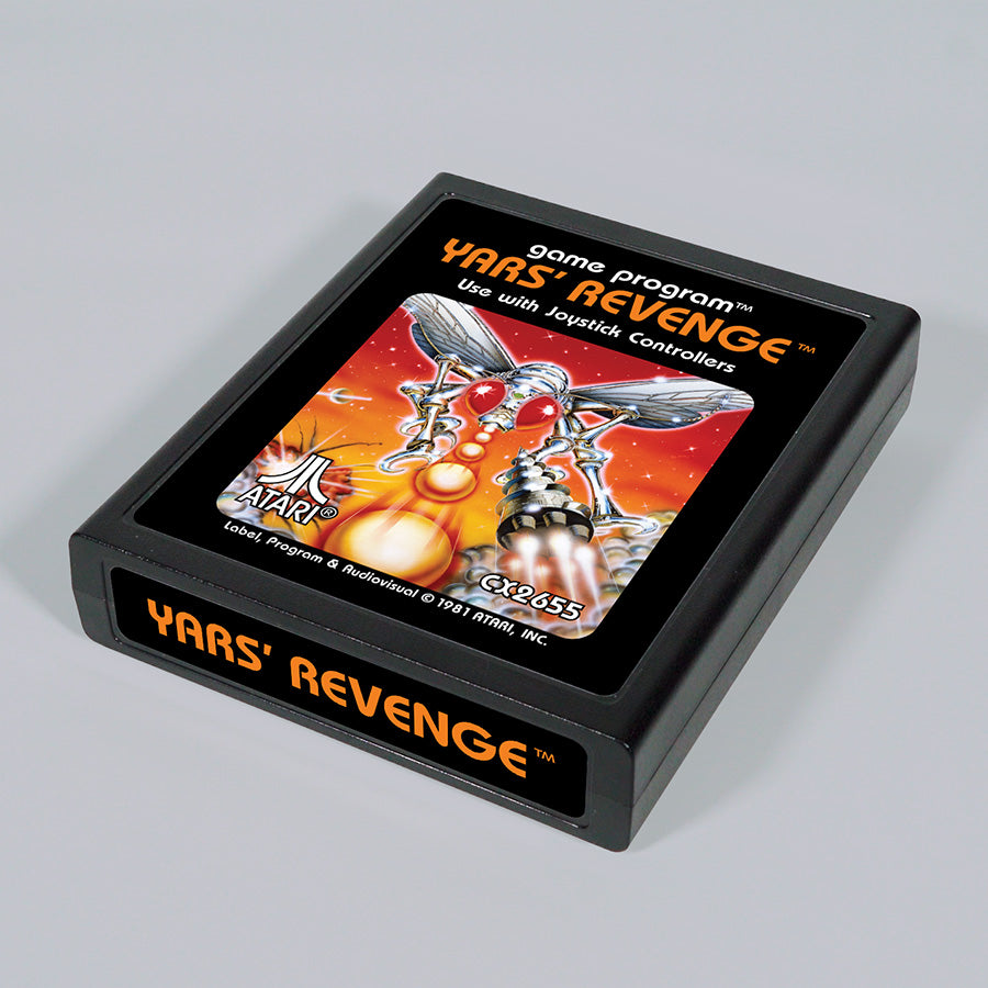 This new cartridge is kind of a BIG deal. This oversized cartridge is a replica of the original Yars’ Revenge 2600 game cartridge, perfect to display on your desk or game shelf. Replica only, not playable.